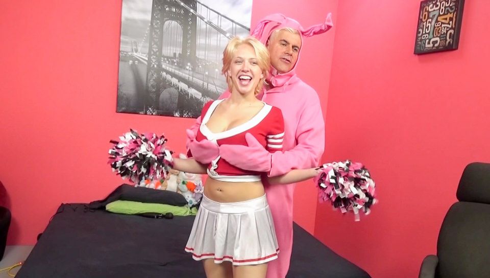 Kagney Linn is a dynamite stick lit like a sparkler. Her blonde sprouts and cheerleader smile gets the action going! Dan puts his bunny suit on and poses with the darling... to postpone a very explosive orgasm. Dan gets Kagney on his face and she gets on his hard cock. Boobs giggle and asses rump in this happily matched romp.